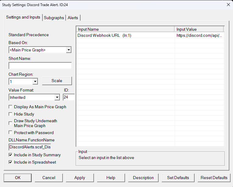 DiscordAlerts.dllto your Sierra Chart/Datafolder - In Sierra Chart: