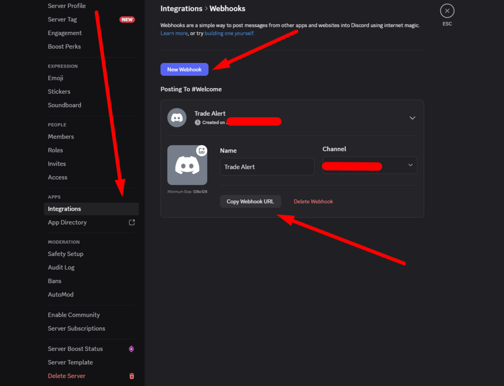 - β Discord server with webhook permissions
